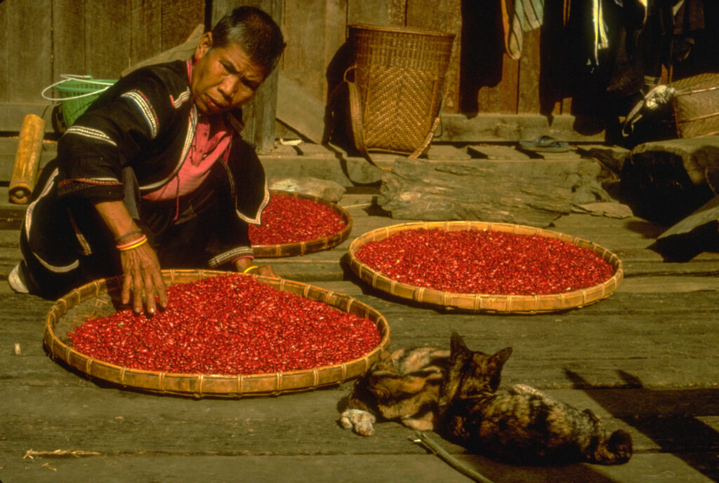 In 1986 while “on the road” in Asia my husband John and I met a New York videographer traveling with his girlfriend. We teamed up to share a car and driver to visit and photograph the Hill Tribe area of Northern Thailand. The seven major hill tribes of Northern and Western Thailand have migrated from China over the past 2,000 years, each working to try to maintain its distinct language and culture.